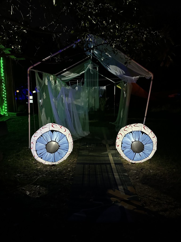 As I left to go home I noticed one last detail. The parking lot was illuminated by long fluorescent light bulbs strategically placed in the bushes separating the festival grounds from the cars. I could enjoy some surreal art AND find my car! Thanks, Midwest Psych Fest!